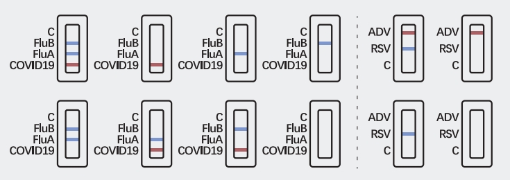 Multiple positive:Two coloured (C) lines appear in two separate window.If the other line appears,the corresponding pathogen is positive.