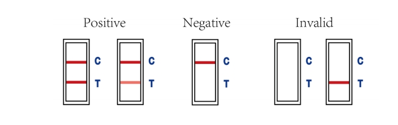 If the control (C) lines do not appear, the test is considered invalid. An invalid test result means that your test has encountered an error and the results cannot be interpreted. You will need to retest using a new test card. The test results are for clinical reference only and should not be used as the sole basis for clinical diagnosis and treatment, they should be combined with the patient’s condition, clinical manifestations, and other test results to make a comprehensive judgment; subject to the limitations of analytical sensitivity, negative results may be due to the low concentration of antigens in the samples, and it is recommended that the negative results be reviewed by other methods if there is any doubt about the negative results.